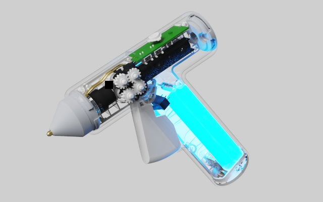 該膠槍採用人工智慧晶片,可保持恆溫,防止膠水溢出。它可智慧監控使用情況,並在長時間不活動後自動關閉電源,以增加安全性